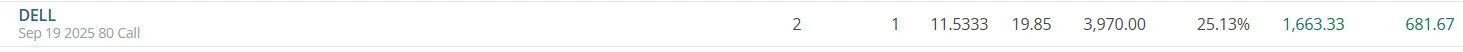 DELL SEPTEMBER $80 Calls - FIrst profit target reached